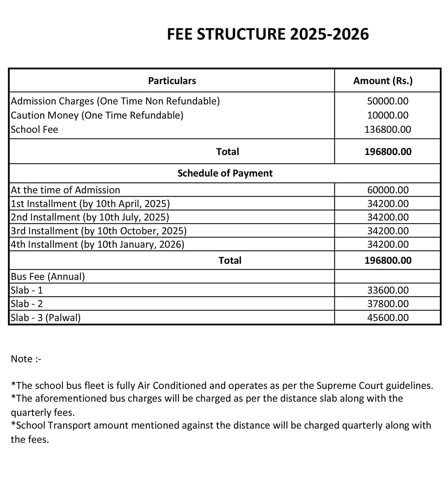 Fee Structure 2025-2026